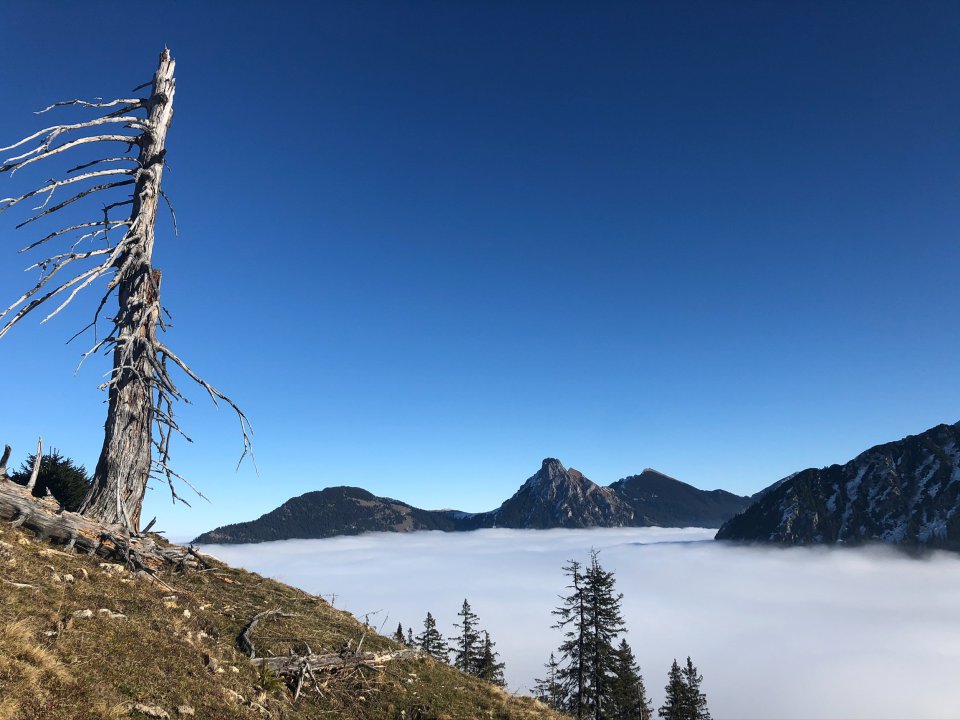 Tiefe Wolken hängen im Tal, doch auf den Bergen scheint die Sonne. Zuerst bei diesigem Wetter mit Jacke aufbrechen und dann durch die Wolken in die Sonne wandern. Das ist ein ganz besonderes Erlebnis. Während die Gipfel aus den Wolken herausragen, liegt unter dir ein großes Wolkenmeer. Das musst du gesehen haben.