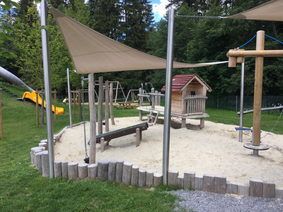 Der Spielplatz in Grän ist nur 300 Meter vom Lumberger Hof entfernt. Ihr solltet unbedingt vorbeischauen. Eine schöne Abwechslung für euren Familienurlaub im Tannheimer Tal.